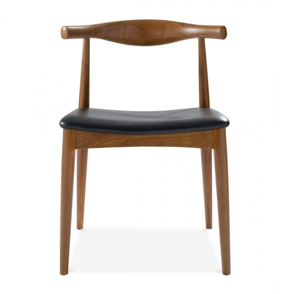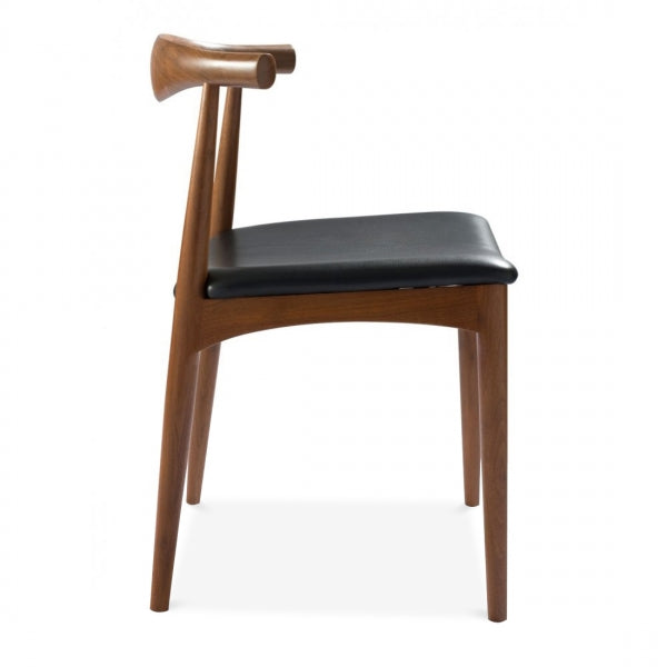 This chair has a gracefully curved backrest and plush leather seat create a luxurious seating experience. With a rich wooden design, this chair not only adds warmth but also a touch of sophistication to your cafe.
