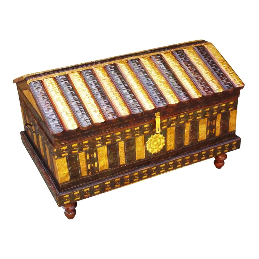 Majestic Box Furniture is a regal and ornate piece from box furniture manufacturers, featuring golden accents and rich patterns. Available online, this box furniture for sale is a luxurious expression of Jodhpur's historic design and contemporary functionality, perfect for elevating home interiors.