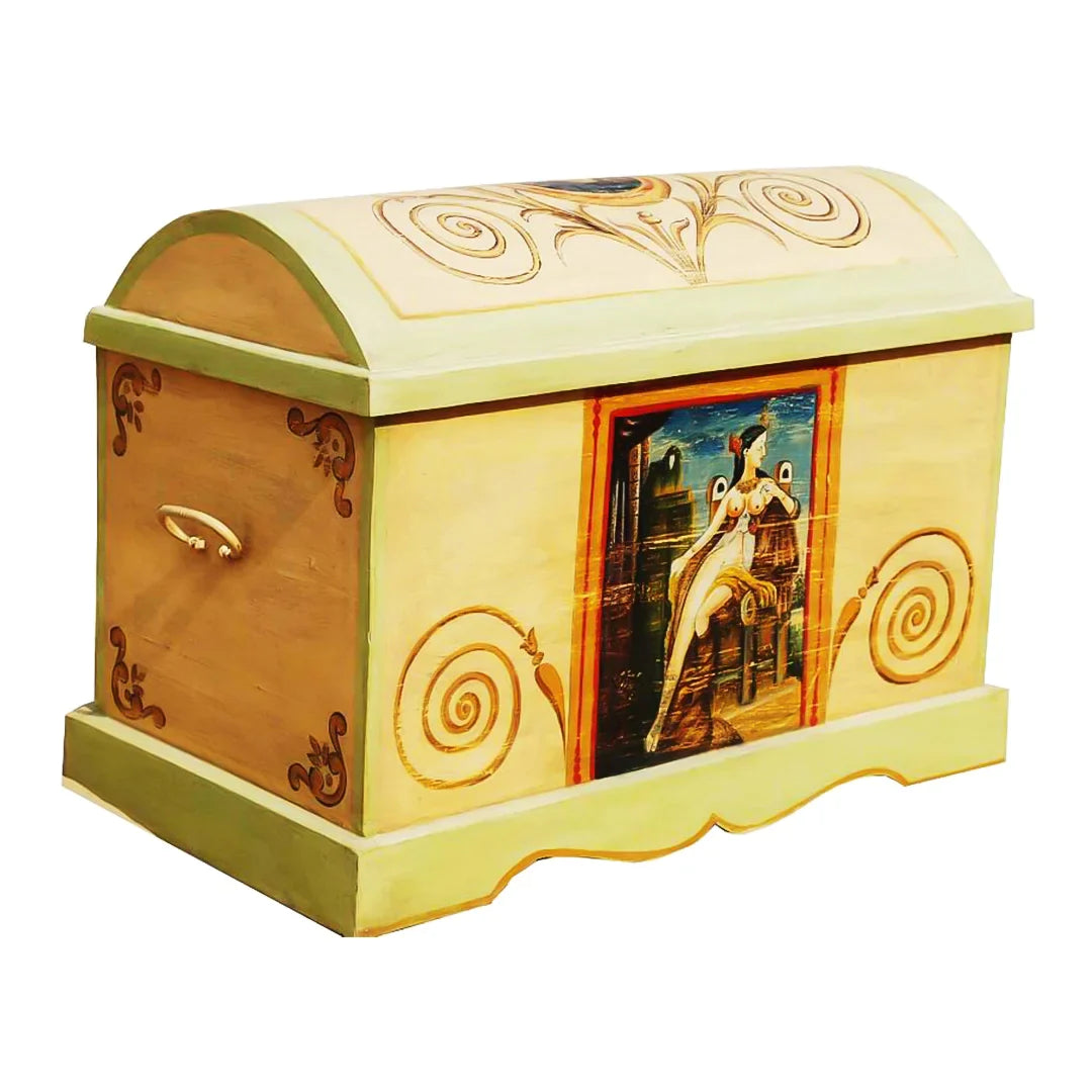Artistic Box Furniture stands out with its vibrant, hand-painted exterior, a true reflection of the creativity of box furniture manufacturers. This piece captures the essence of Jodhpur's artisanship and is available as box furniture for sale online. It offers an eclectic mix of functionality and art, perfect for those seeking a modern twist on classic furniture.