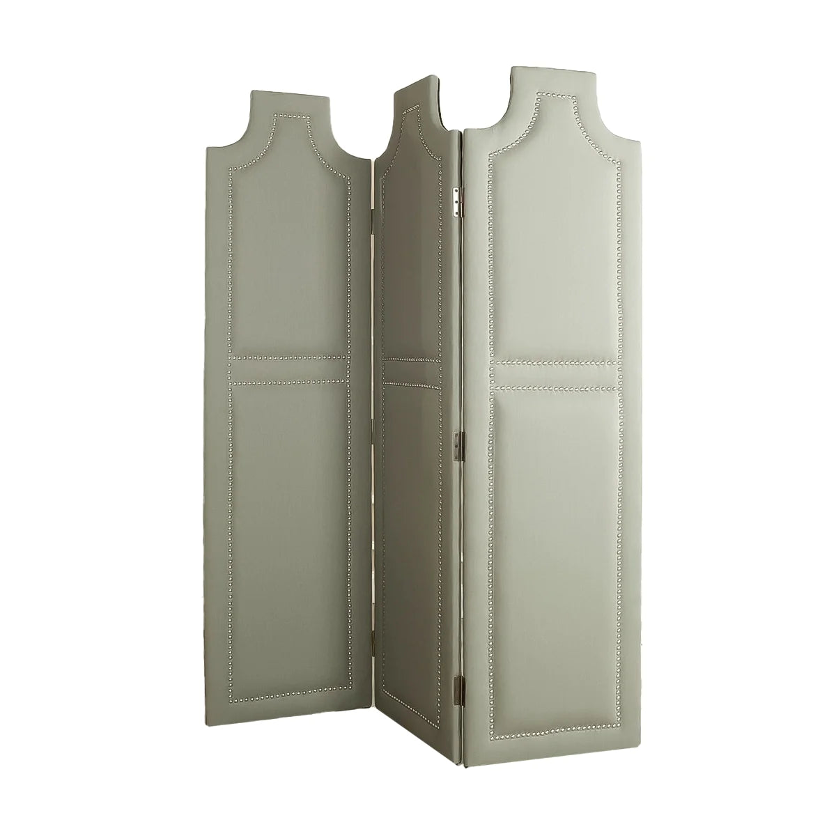 Experience the elegance of minimalism with the Sage Screen. This three-panel divider boasts a soothing sage green hue, enhanced by classic nail head trim detailing. Crafted from durable materials, it offers both privacy and style, making it an ideal choice for serene living spaces. Its sturdy construction ensures long-lasting use, while its foldable design allows for easy storage. Perfect for creating a peaceful corner or dividing a room, the Sage Screen is a versatile addition to any interior design.